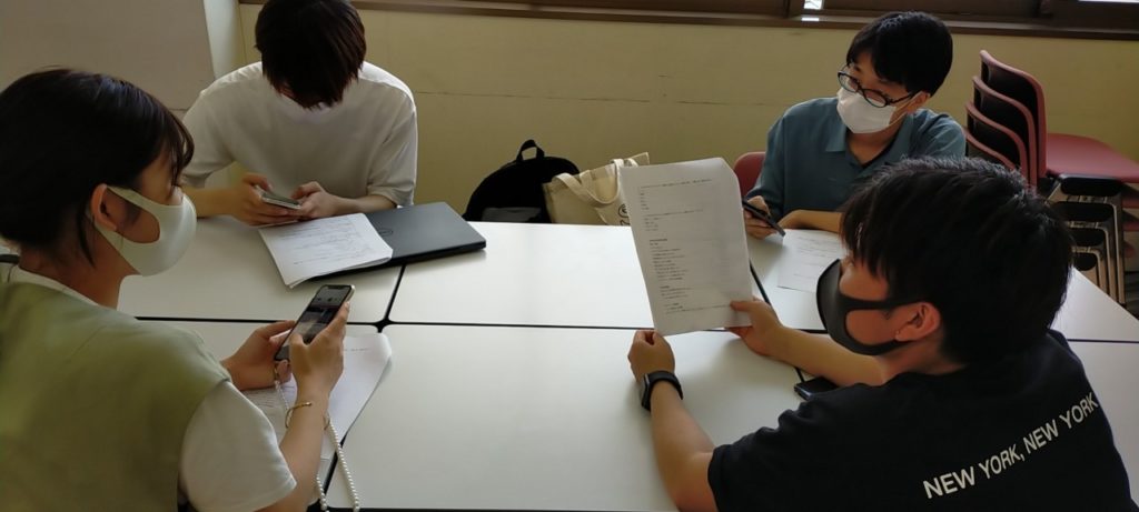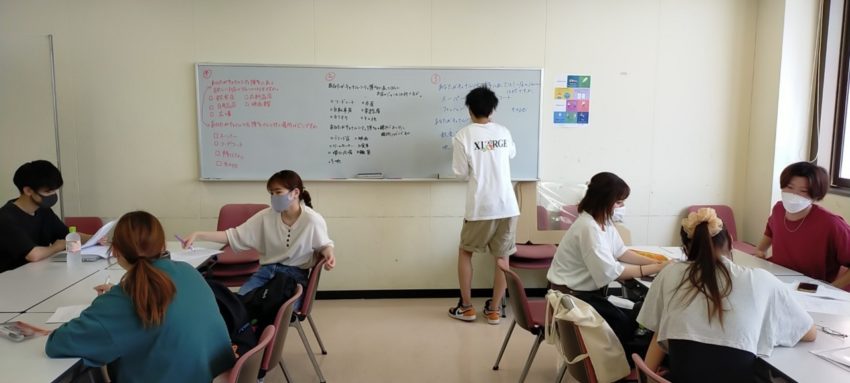 7月13日:第13回のゼミでは消費者への質問の選択肢項目の作成をしました。また、チームごとに担当した質問を発表し、その後全体で統合させました。
