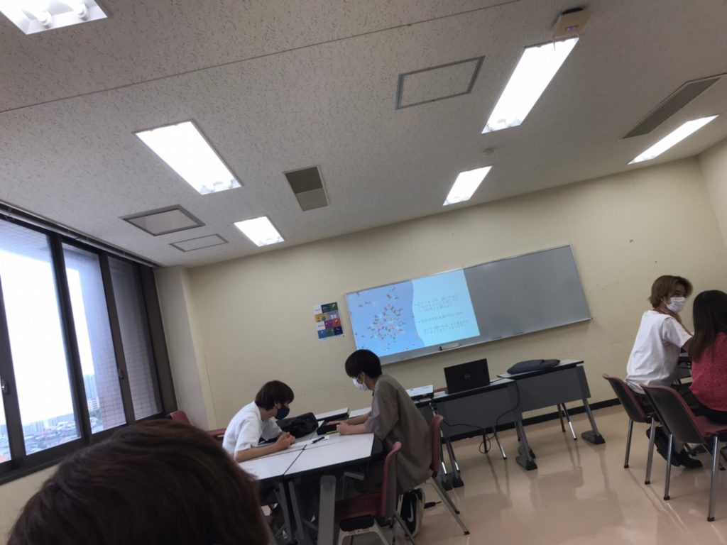 今回のゼミでは自由研究委員会が考えた3,4人班で最初は簡単な自己紹介をして自由研究においての個人目標と班としての目標を考えて、発表したあと、自由研究テーマを15個考えた。