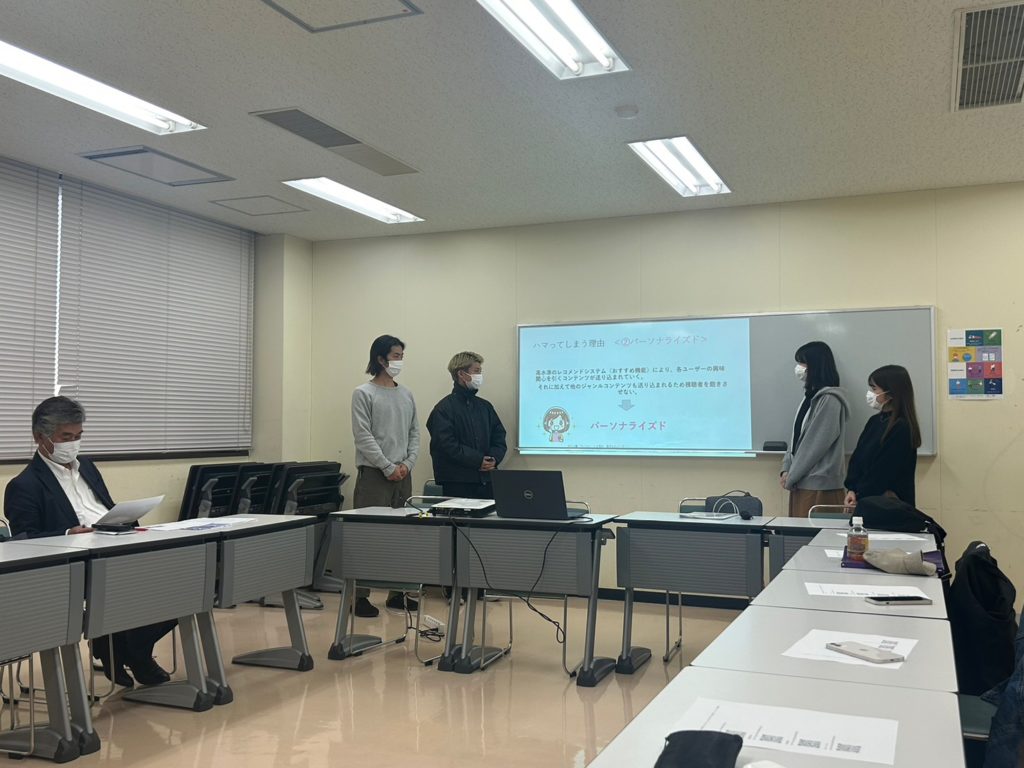 今日は外部講師の方が来てくださって、各班の研究テーマーと内容を発表しました。どの班も事前にしっかり準備している感じで、スムーズに発表できたが、その後の質問がなかなか難しかった。最初のTIKTOK班はしっかり理由や根拠を述べていて、難しい言葉を使った前回とは違ってわかりやすくなっていた。最低賃金班はパワポがしっかりしていたが、前回休んでしまって、うまく発表できなかった。北海道班は、発表順をしっかりわけていて、わかりやすかった。Eスポーツ班は、内容がすごくおもしろかった。外部講師の方はどの発表にも的確に質問していてすごかった。残るゼミももう少しなので、頑張りたいと思った。