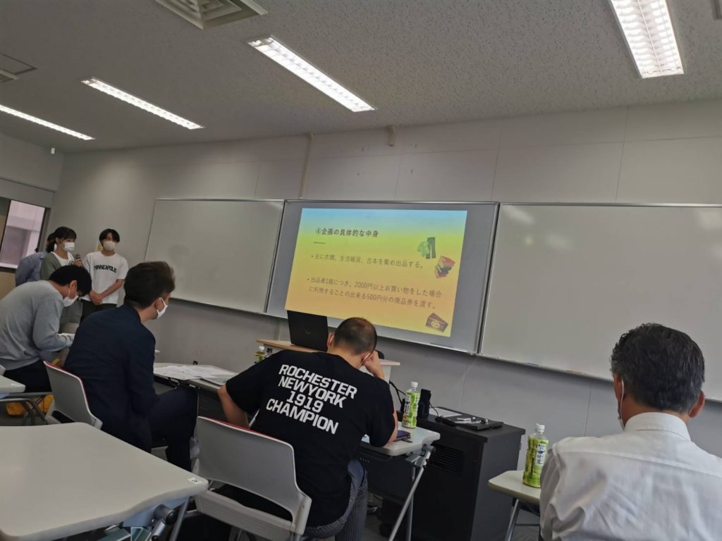 9月20日:本日のゼミでは、キャナルシティ博多の関係者の方々や山口さんにどうせきしていただき9月上旬にキャナルで行われたイベントについての振り返りと前期に各班で考えたイベント企画案のプレゼンテーションを行いました。