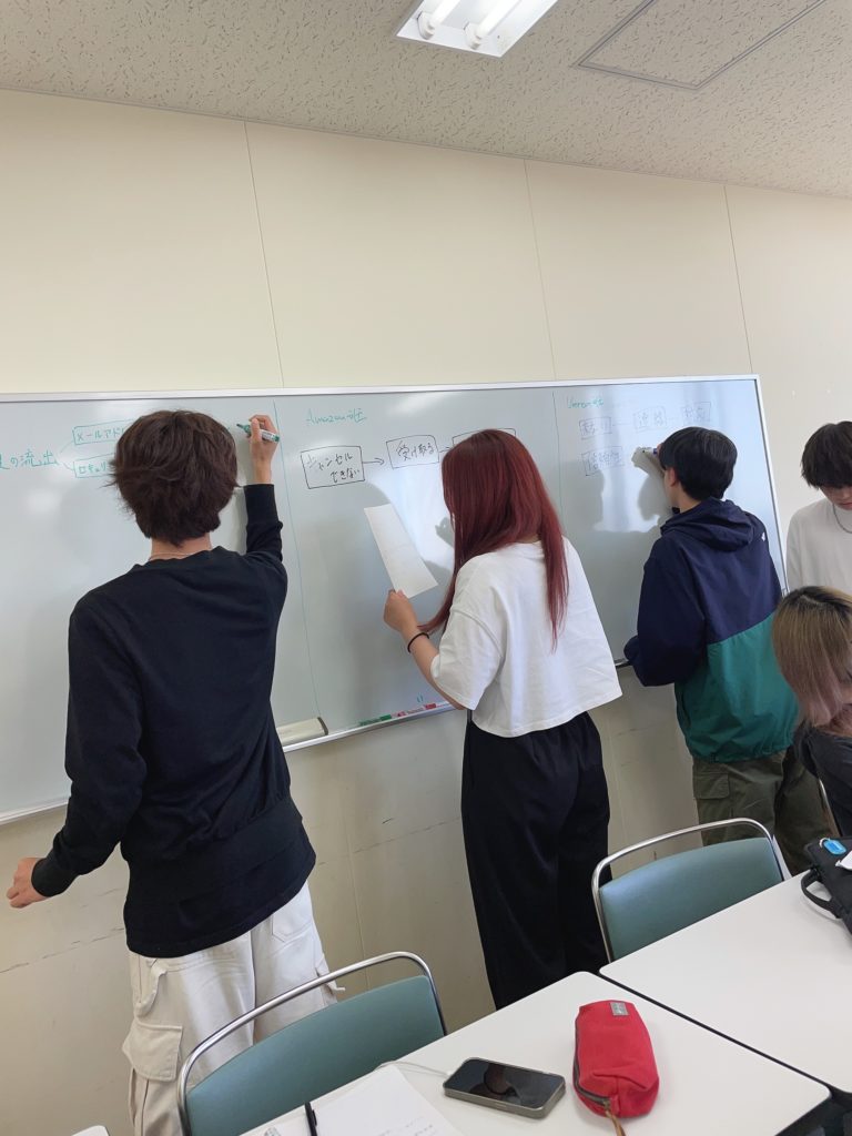 今回のゼミでは,まずはグループでプラットフォームの種類を決め、そのプラットフォームを利用する時の不安点をグループで話し合い、でてきた不安点の対応策をうまくまとめて発表するという活動を行った。普段自分たちがよく利用するプラットフォームで話し合ったため、スムーズに話し合いを進めることができ、より良い会話ができたと思う。その内容をゼミ内で共有した後は、先生にPowerPointで問題解決型プレゼン資料の作成のやり方を教わった。その教わった内容をもとに個人でグループで話し合った内容を参考にしてPowerPointでプレゼンの作成を行った。